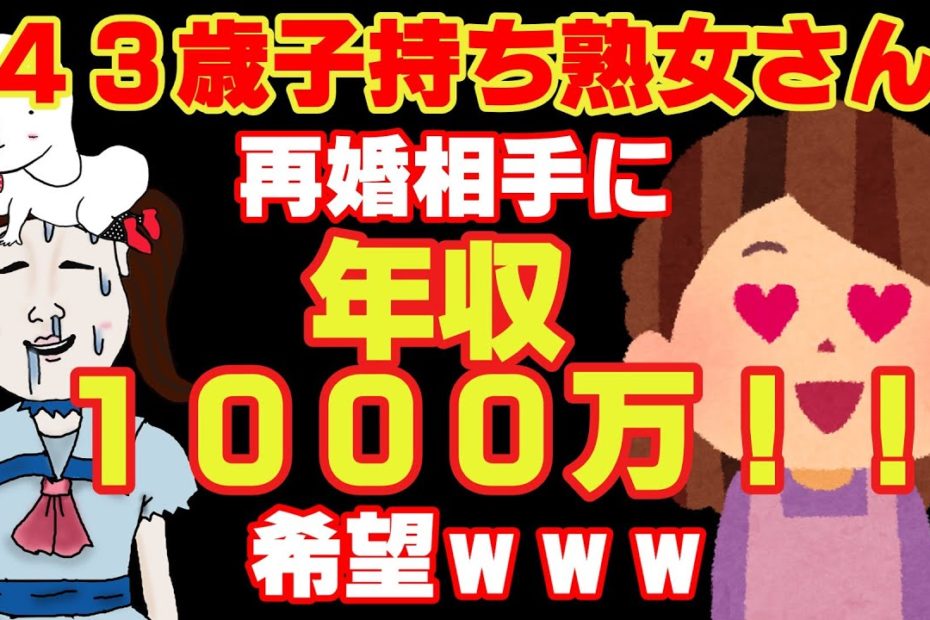 【アラフォー婚活痛女】中学生2人の息子を持つ43歳婚活女子さん。再婚相手には年収1000万… 続きを読む »【アラフォー婚活痛女】中学生2人の息子を持つ43歳婚活女子さん。再婚相手には年収1000万以上、50歳まで、子無しを望んでいるようですwww