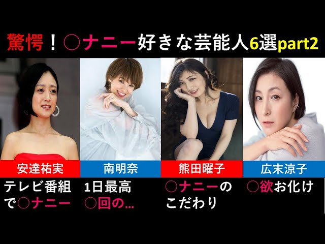 #ゆっくり解説 #放送事故#安達祐実#広末涼子#南明奈#熊田曜子 #清水あいり#手島優 1… 続きを読む »【ゆっくり解説】○ナニー好きな女性芸能人6選 part2