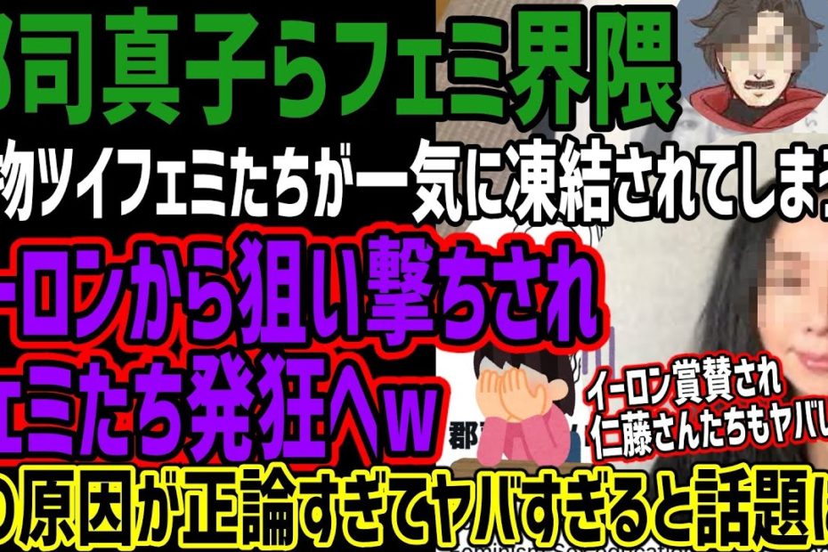 【フェミニスト】郡司真子ら大物ツイフェミたちが一気に凍結されてしまうwイーロンからやられフェミたち発狂へwその原因が正論すぎてヤバすぎると話題にw