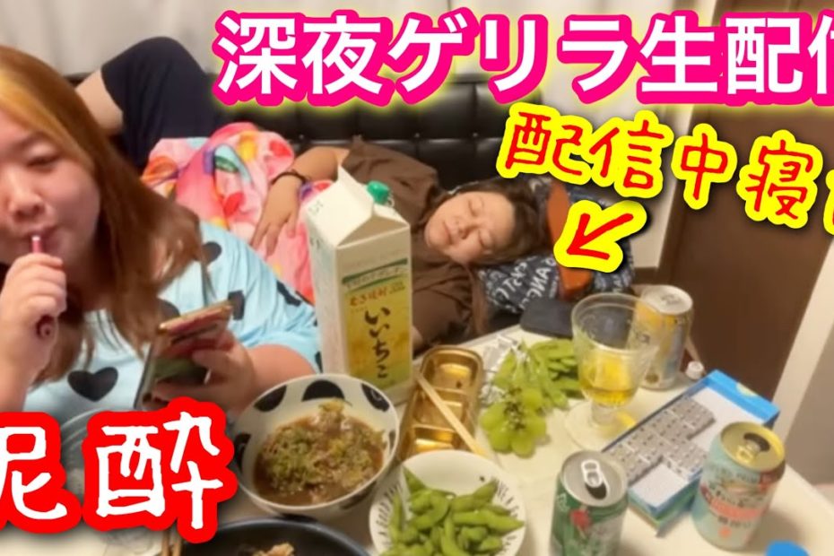 【ゲリラ生配信】デブ深夜の泥酔お泊まり飲み会❤️1人はガチ寝しました‥調子乗って3時間!【アラフォーぽっちゃり】
